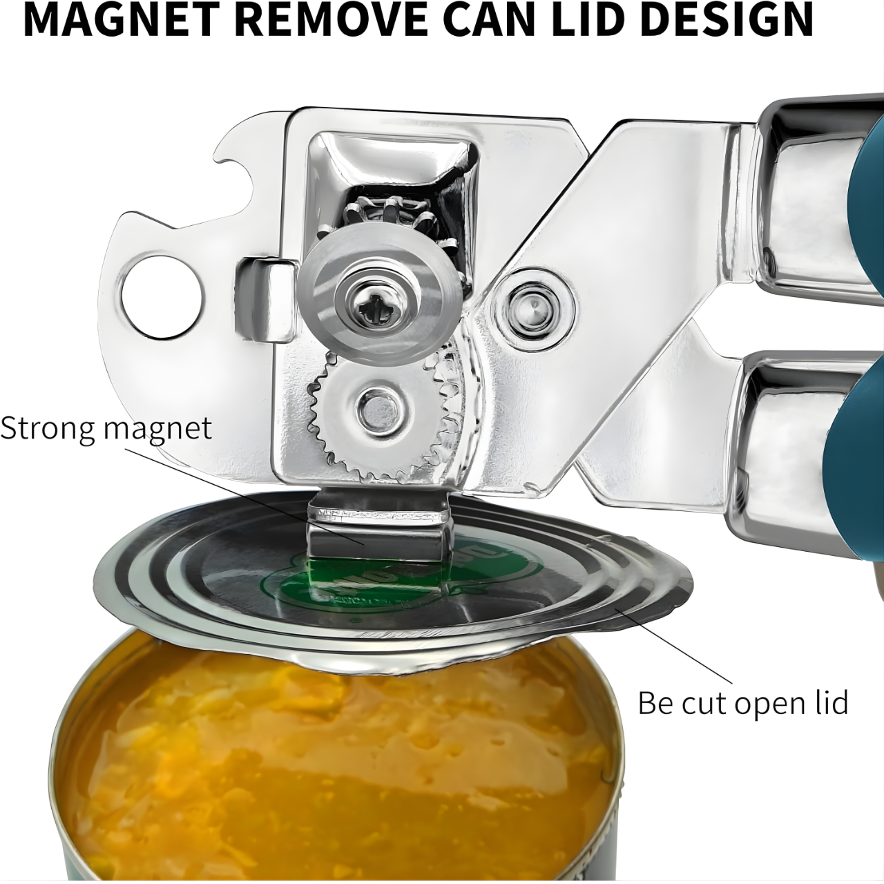 - Integrated Magnetic Lid Lifter: A stable, strong suction magnet helps you easily lift the lid after cutting, protecting your hands from sharp edges and keeping the process sanitary.